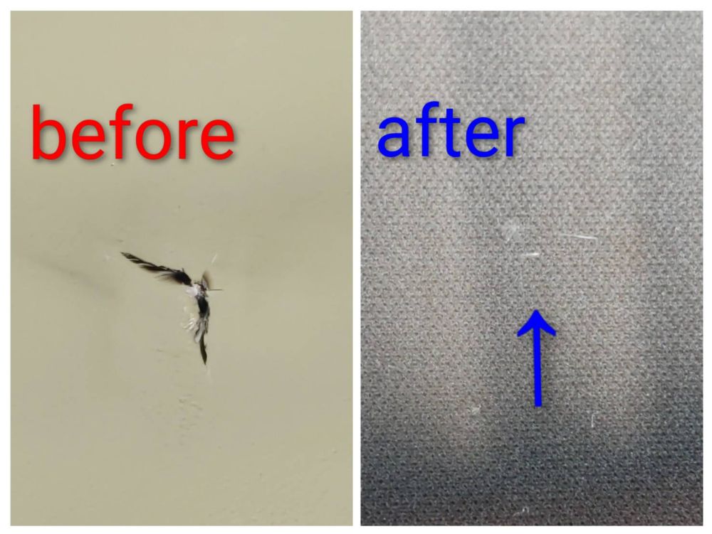 当初の飛び石傷をしっかりリペアさせていただいた後、ガラス全体を確認すると、別の場所にも新たな飛び石傷を発見。お客様とご相談のうえ、追加でリペア施工を行わせていただきました。