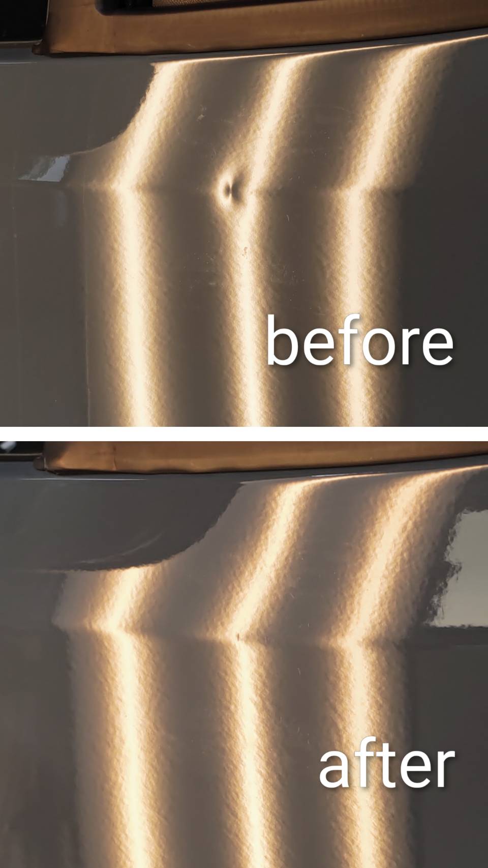 今回はドアのプレスライン上にできた傷を伴うヘコミ。