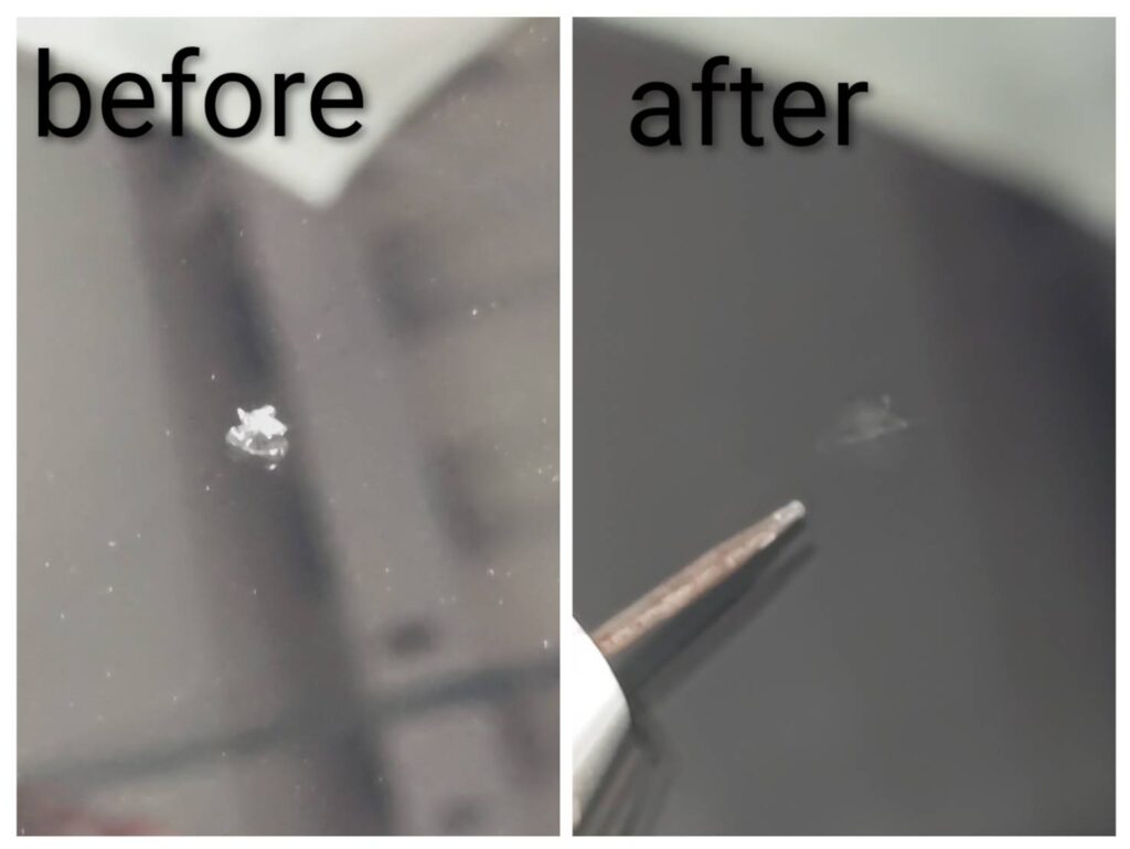 ヒビの内部に専用の樹脂をしっかりと注入し、UVライトで硬化。