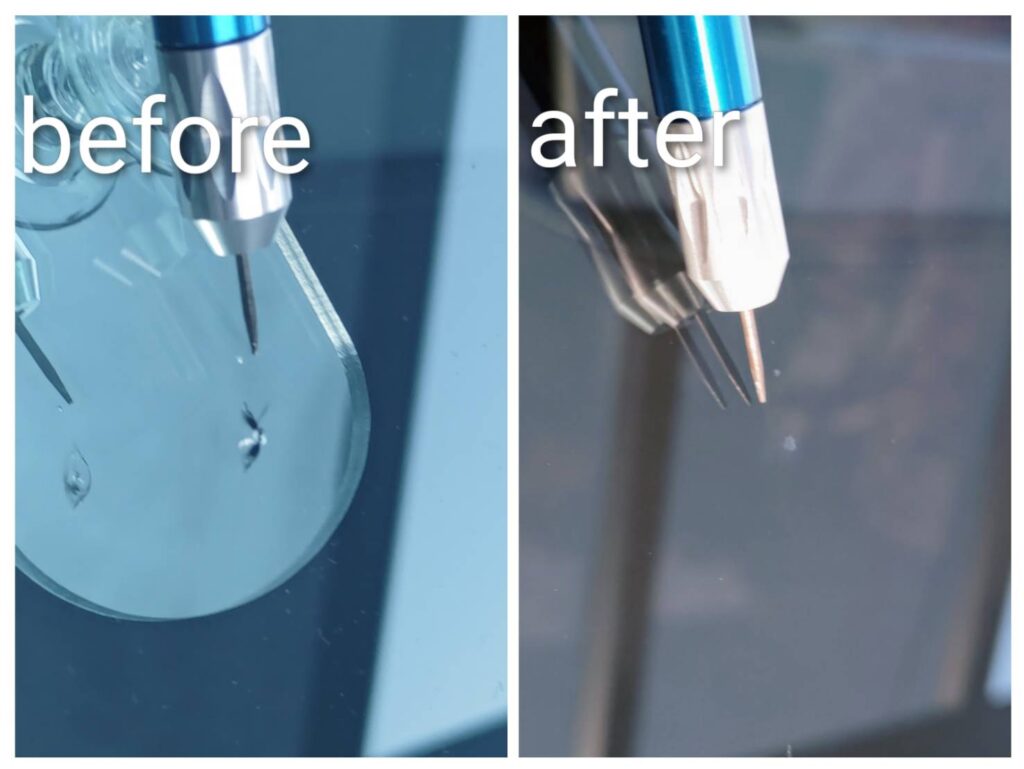時間をかけて、ヒビの内部に専用の樹脂をしっかりと行き渡らせ、