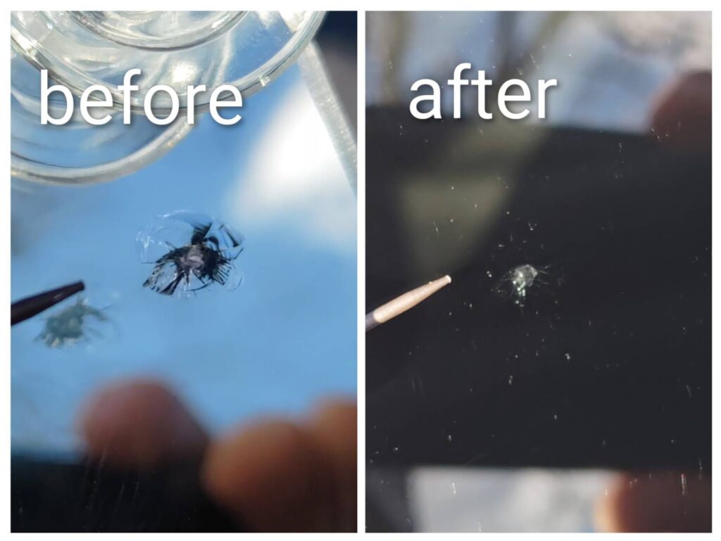 ガラスリペアは、ヒビの内部に水分が残っていると仕上がりや強度に影響するため、