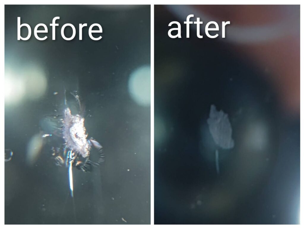 ヒビの内部に専用の樹脂をしっかりと注入し、UVライトで硬化。